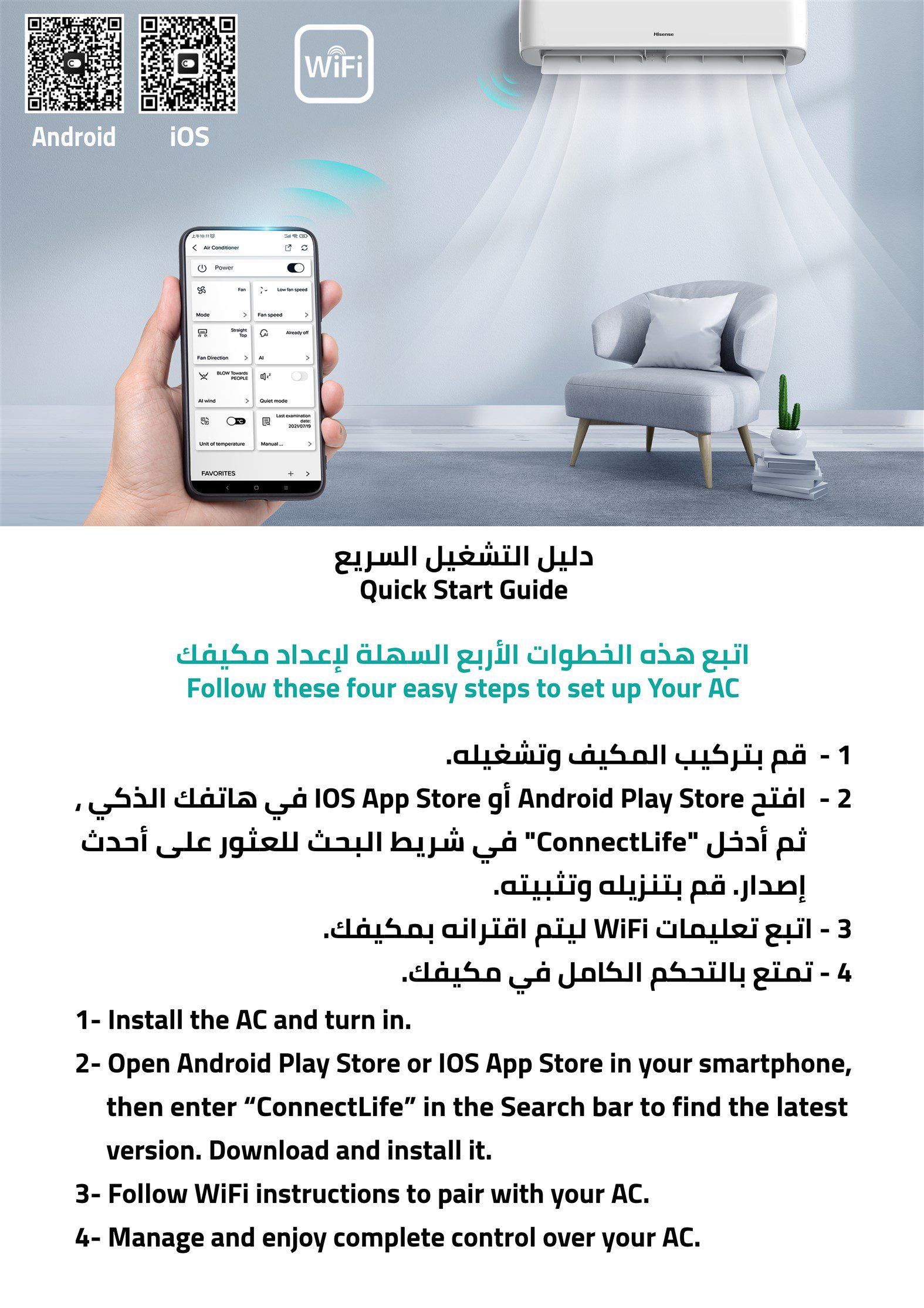 مكيف هايسنس جداري 27000 ب، واي فاي،بارد